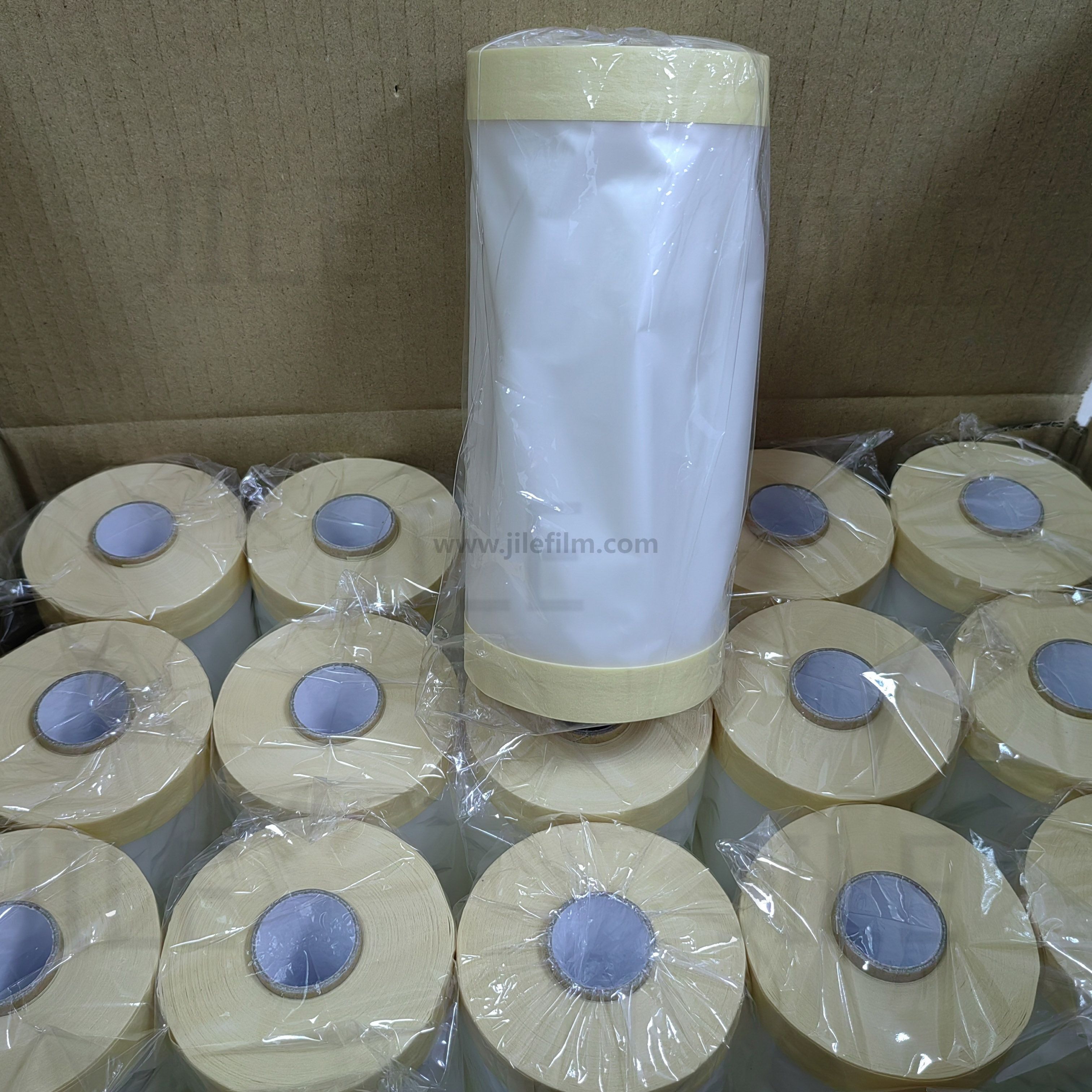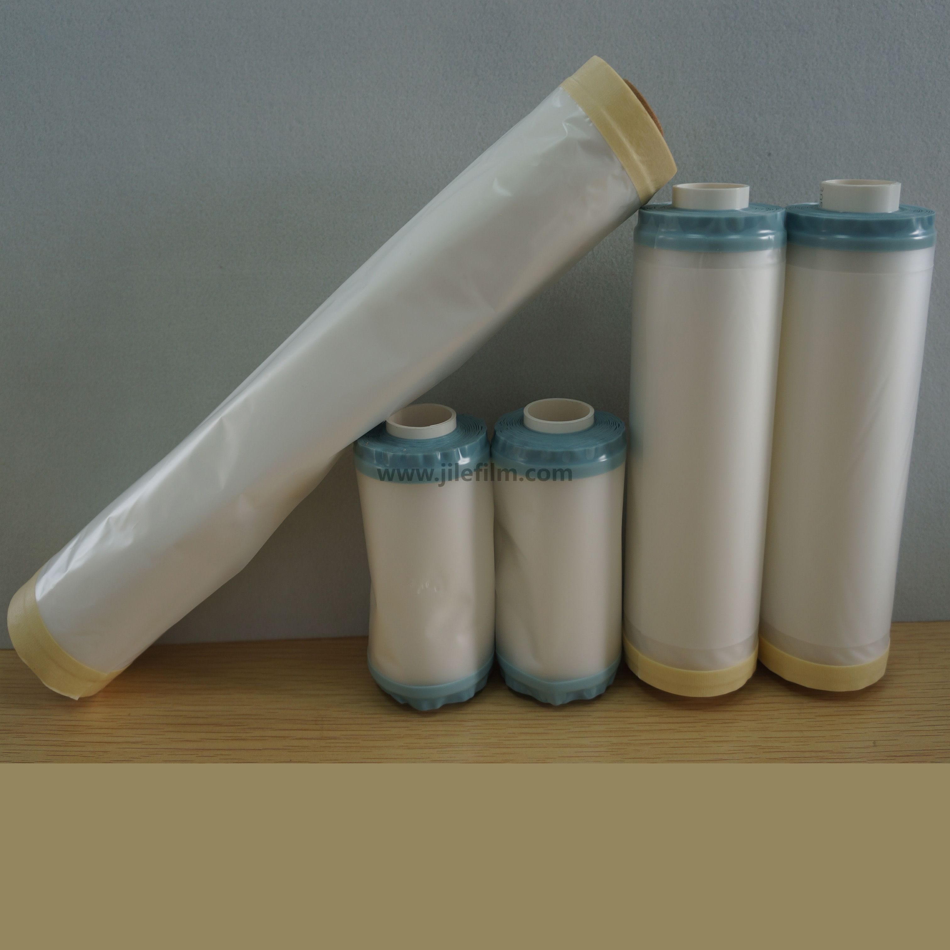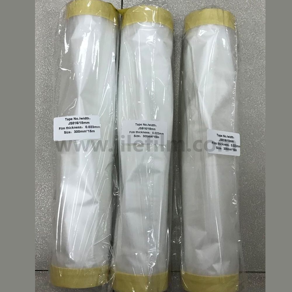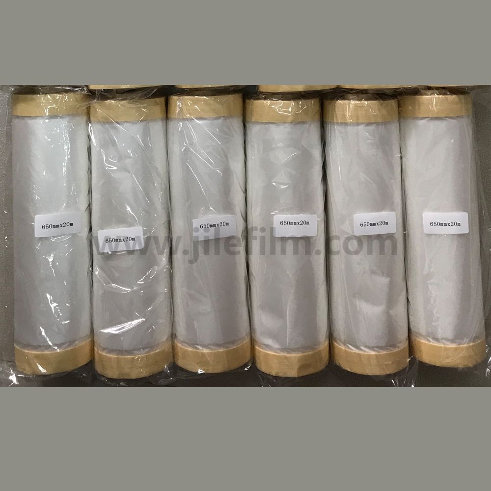 Aplicativo: usado principalmente para mascarar seções de carrocerias de automóveis, pára-choques e mesas de instrumentos durante o processo de pulverização para automóveis, trens e aviões.O filme é composto por fitas em ambos os lados para facilitar o uso dos produtos.O design economiza energia humana e reduz o tempo de preparação para a pintura.Tanto a fita quanto o filme são resistentes o suficiente para suportar temperaturas de até 130ºC por 30 minutos.