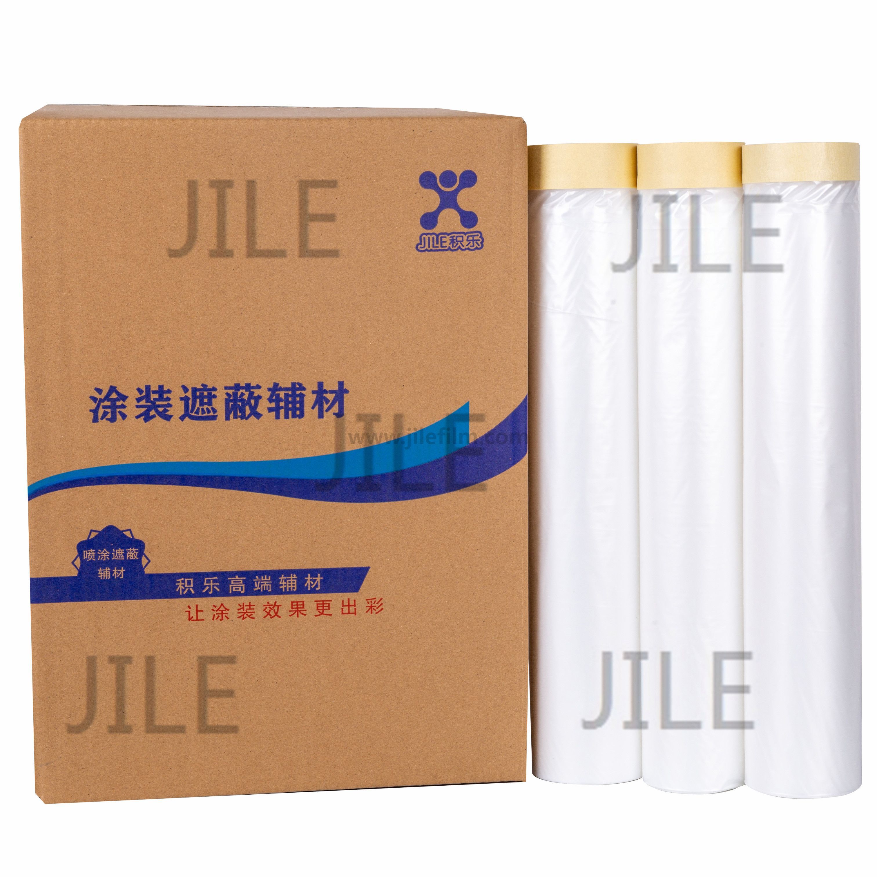 Aplicativo: usado principalmente para mascarar seções de carrocerias de automóveis, pára-choques e mesas de instrumentos durante o processo de pulverização para automóveis, trens e aviões.O filme é composto por fitas em ambos os lados para facilitar o uso dos produtos.O design economiza energia humana e reduz o tempo de preparação para a pintura.Tanto a fita quanto o filme são fortes o suficiente para suportar temperaturas de até 130ºC por 30 minutos.