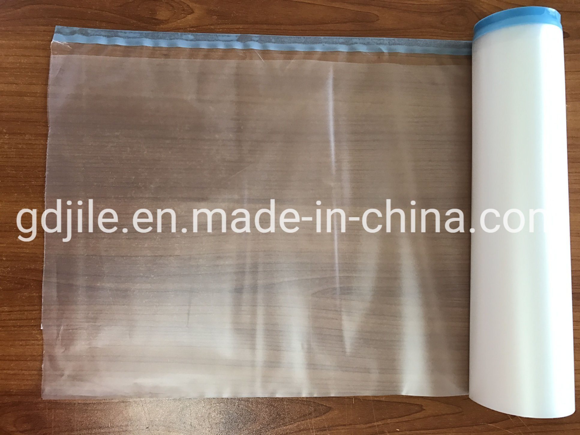 Aplicativo: usado principalmente para cobrir grandes seções para proteger as peças durante o processo de pintura por spray.A resistência ao calor atinge até 80ºC.A enorme membrana é dobrada em tamanho pequeno.Pode ser desdobrado rapidamente para uma cobertura rápida.O design economiza energia humana e reduz o tempo de preparação para a pintura.O filme tipo PE também possui capacidade de adsorção eletrostática, o que torna o mascaramento mais fácil e rápido.