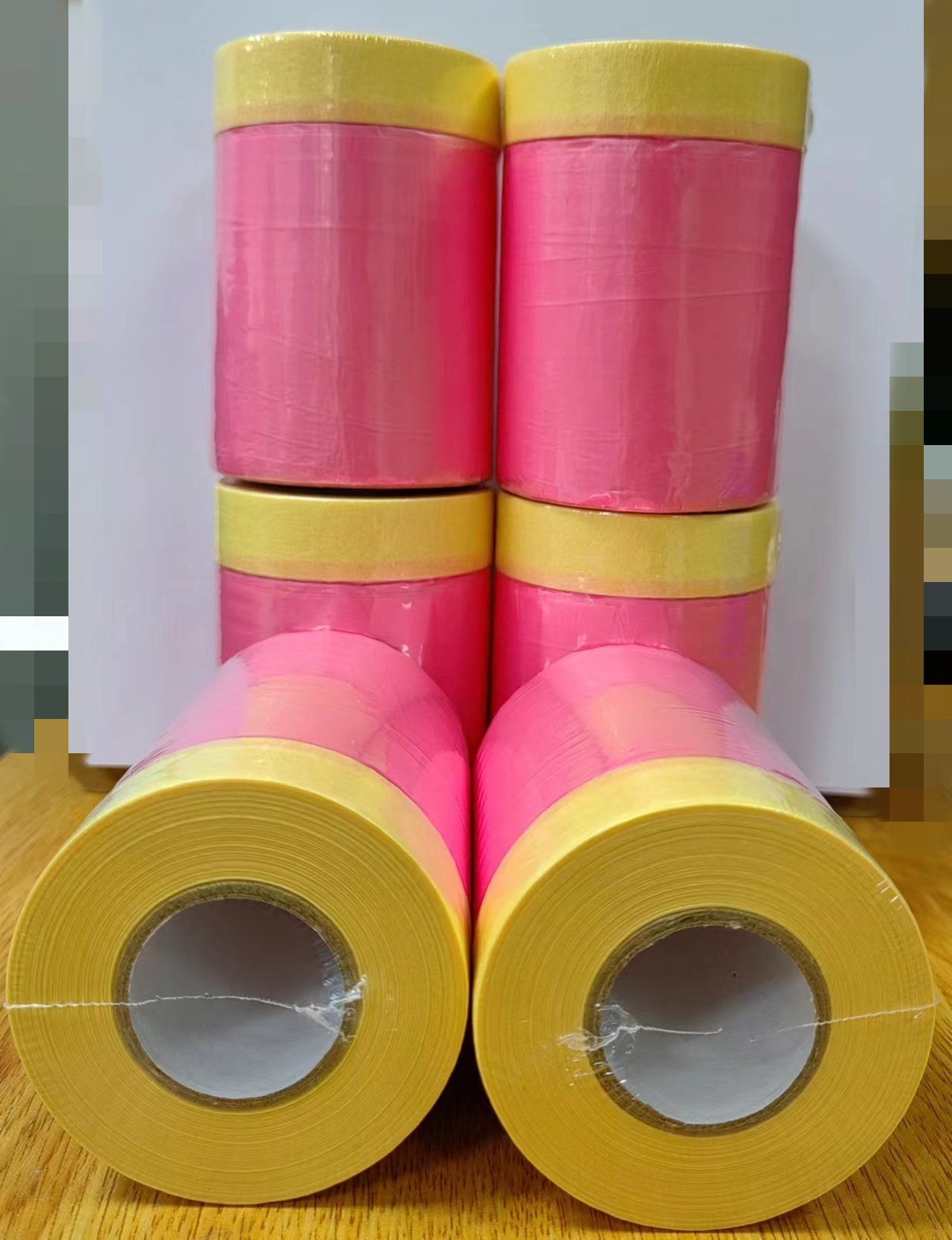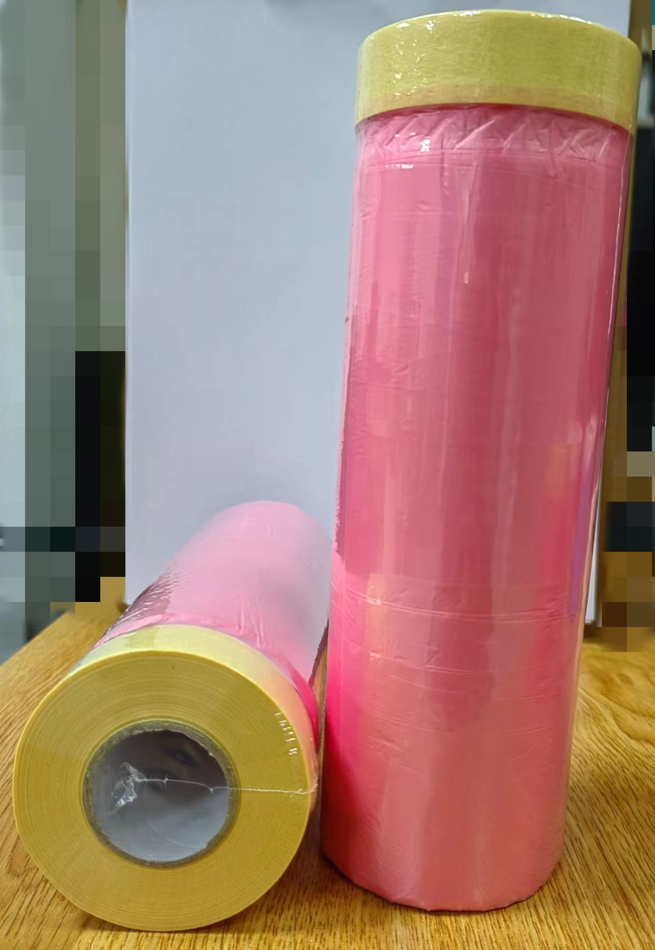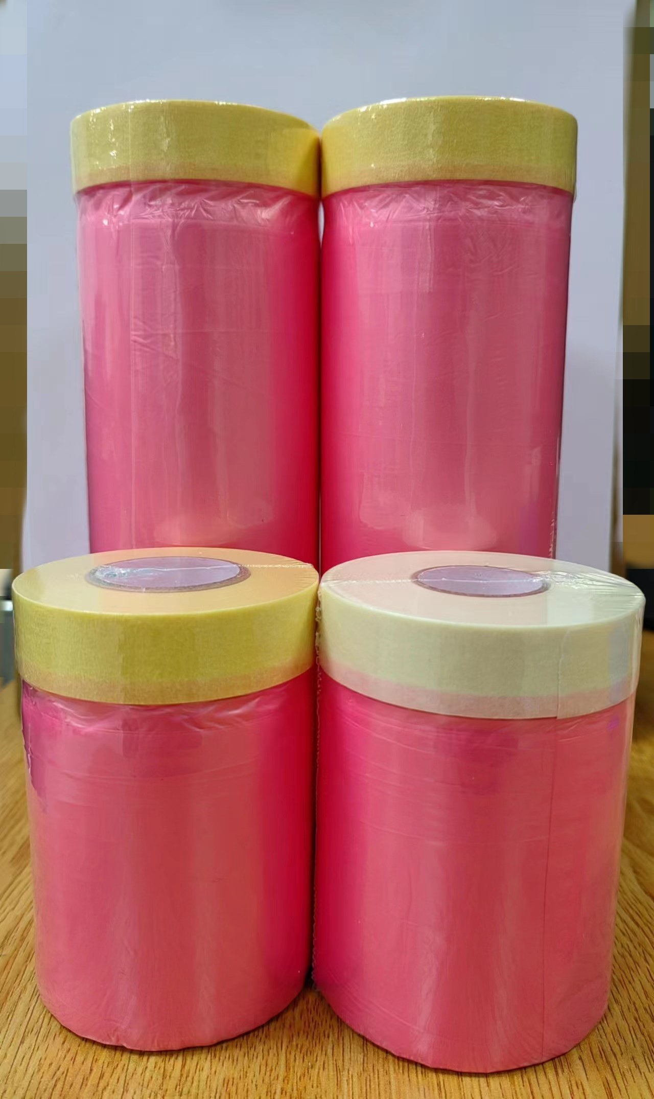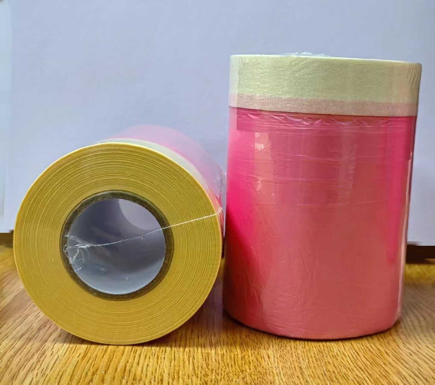 Filme de mascaramento de pintura: Filme e fita em um único rolo.